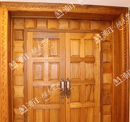 柚木原木門定制系列均采用緬甸原始森林百年以上的老柚木樹為原材料,全部存放3-5年以上做自然養生過程,選料考究全部參照國際標準執行,紋路清晰即使半成品也再度經過標準氧化及干燥含水率處理,顏色金黃且不易變形,因此沐年定制的原木門簡約不失大氣,含蓄而奢華;